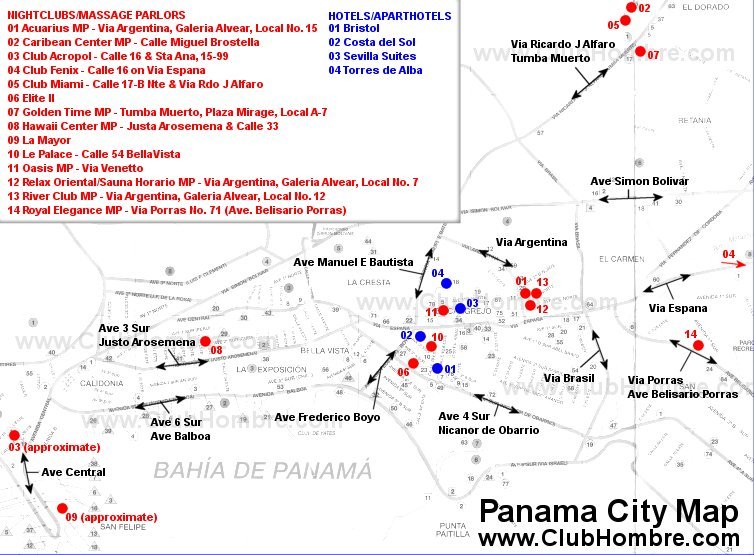 Map Contents: Alcasar, Arcadas, Candyland, Casa 360, Eros Massage, Erotica 3, Golden Girls, Hotel Del Rey/Blue Marlin, Hotel Little Havana, Idem, Illusiones, Kama Sutra, Key Largo, Krysis, La Bella Mansion, La Mansion, Liliam, Masion I, Molino Rojo, New Fantasy, Nicole, Oasis Masajes, Pantera Rosa, Paramont, Pension Arcadas, Pension Erotica N1, Pension La Portugeza, Pension Maison II, Pirate Club, Sala M y S, Sportsmen's Lodge